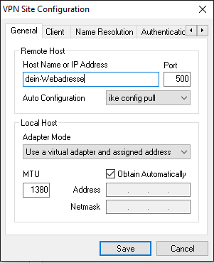 Leider ist die aktuelle Beschreibung von AVM bezüglich der Einstellungen des Shrew-Soft Clinets nicht ganz korrekt bzw. diese Einstellungen haben in meinen Fall nicht funktioniert.