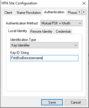 Der Pre-Shared Key wird von der FritzBox! generiert. Angezeigt wird dieser Key unter dem Punkt der IOs bzw. Android VPN Einstellungen von dem VPN-User. | |